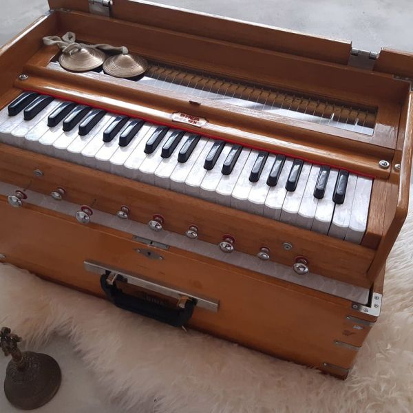 Mantrasangen understøttes med harmonium, guitar, kartals og tromme.